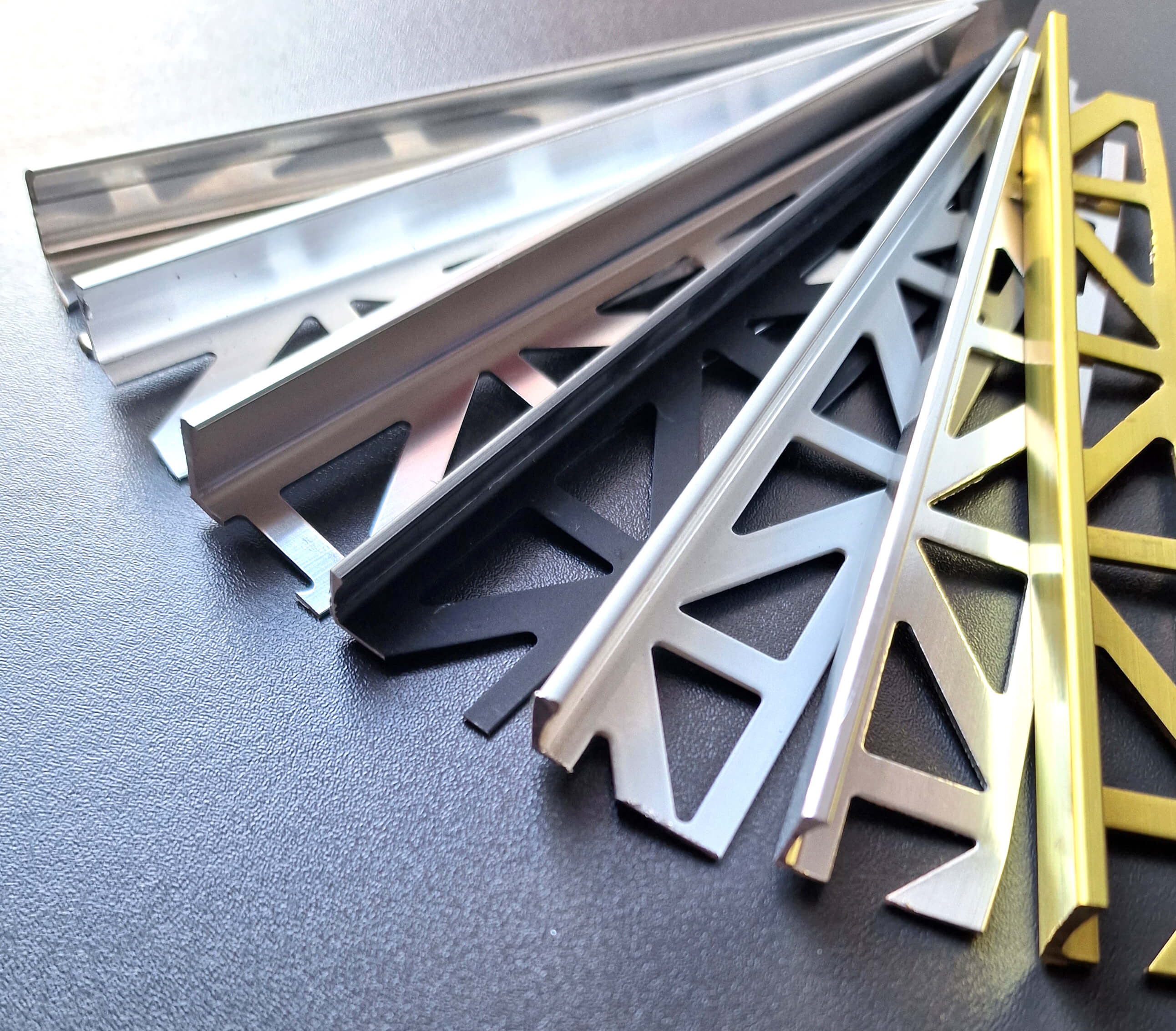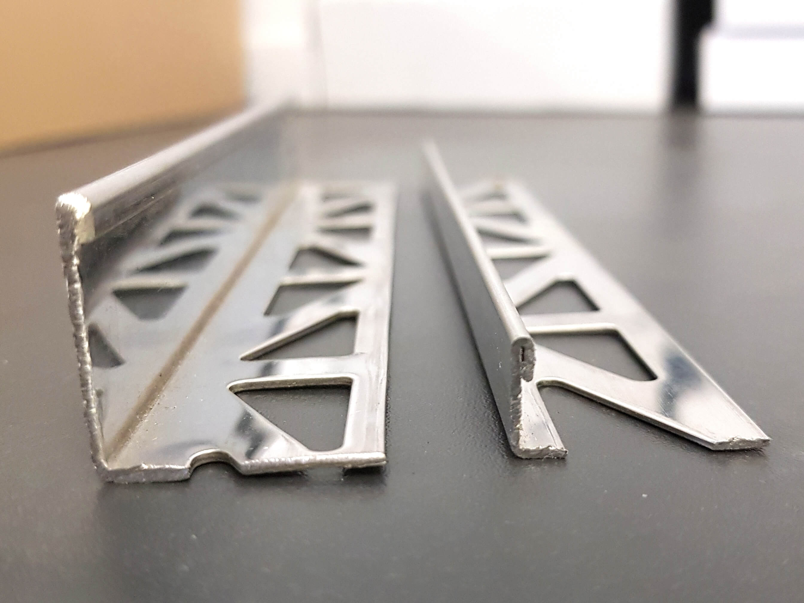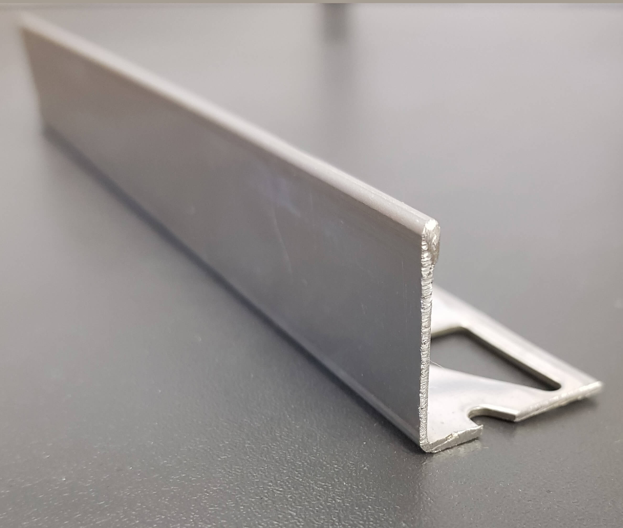 In common with all profile suppliers we “size” our range by the internal height of the angle. This means from the top of the fixing flange to the top edge of the profile. So any profile that we supply as a 10mm is, in reality, 11mm overall height. To avoid confusion we have included an overall height measurement in this website.