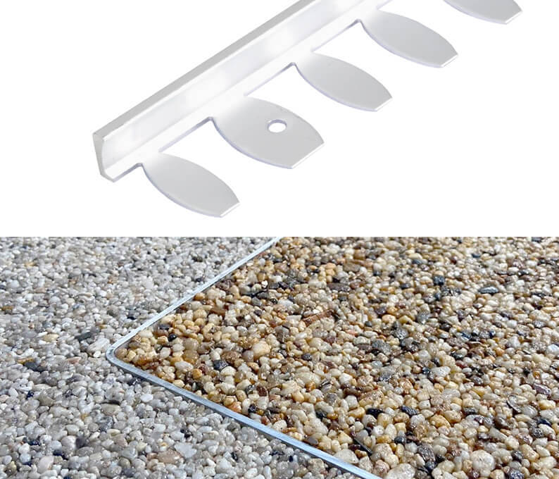 Durosol profiles are most commonly used as an edging trim within a resin bound installation. The flexible options can be curved to create bespoke designs giving a more detailed finish between different coloured resins. All of our Durosol profiles can be easily secured using a large locking nut.