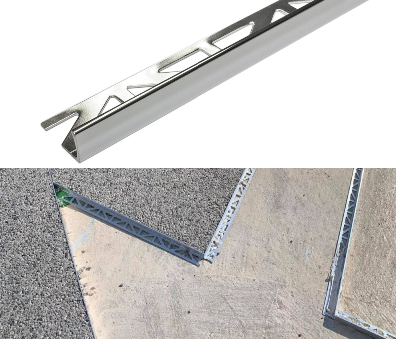 Available in a wide range of depths, sizes and materials, for most resin floor screeds and coatings. Used as a domestic step nosing it can also be fixed to accept a vertical finish at the same time.